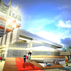 A quick and intuitive distribution of the different congress center functions in the given site, offers the possibility for two auditorium one with 750 seats and the other with 2000. Several exhibition spaces, galleries, conference halls, an outdoor events garden, and a retail venue. The tower can house and hotel, housing and offices. The different photomontages can give an idea of potential possibilities.